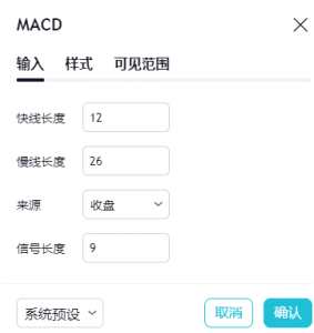 了解完MACD公式后,接下来便是MACD参数设定的问题,MACD指标有三个参数: